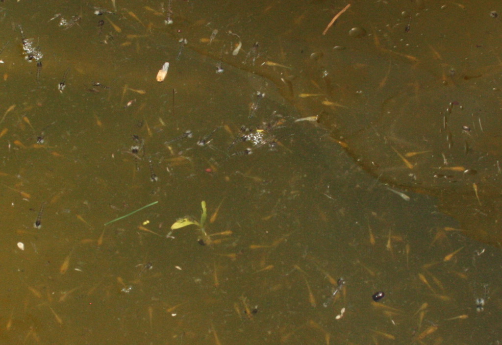 Мальков выпустили в неглубокий водоем, который просто кишит дафнией, "чертиками" и прочей вкусной мелочью. В этих условиях рыбки очень быстро вырастут и превратятся в красивых карпиков.