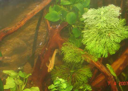Свет включаю на 12 часов -три лампы Power-Glo, Aqua-Glo, Sun-Glo по 20 вт.Днем идет солненый свет через боковые стекла думаю закрыть их фоном.Размеры аквариума длинна 950,ширина400,высота 600(воды 500).