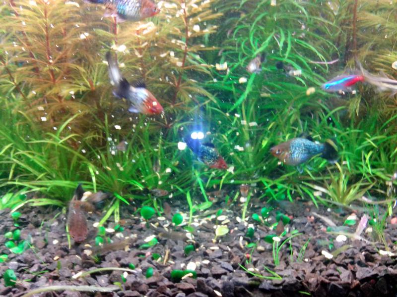 Уважаемые форумчане. Предлагаю Вашему вниманию лот состоящий из Неоновых пецилий 6 самок и 2 самцов взрослых и 8 деток размером 2 см