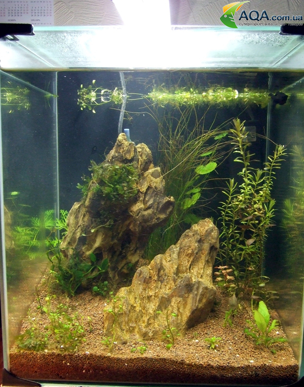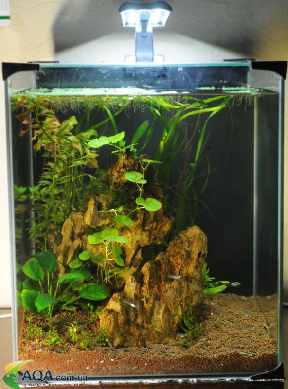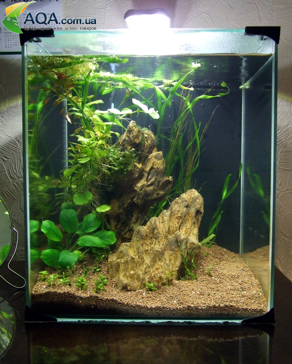 Совет (а точнее мое личное мнение): Для данного освещения аквариума, подбирайте простые растения, которые не требуют много света. Хотя советовать легко  , но большинство простых растений не для такого маленького объема