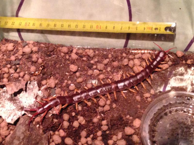 Купил 3 дня назад животное (сколопендру) неизвестной породы 18-20 см в длину, жила в терике почти без грунта (почти не двигалась) 2 дня еще в нем прожила пока не приобрел ей новый тер с грунтом и подогревочкой в итоге день она поползала на поверхности и зарылась в грунт полностью и не вылазит уже сутки. Хочется понять что у меня за животное и зачем оно зарылось? Поднял тер ее видно на самом дне около термо коврика.