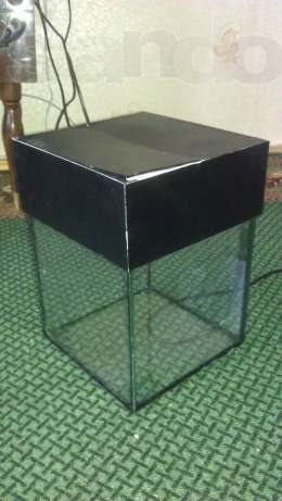 1)Аквариум-кубик 20х20х20 (8л.) + фильтр + термометр + крышка со светом (патрон под лампочку с цоколем Е14) + пленка которой обклеена крышка.
