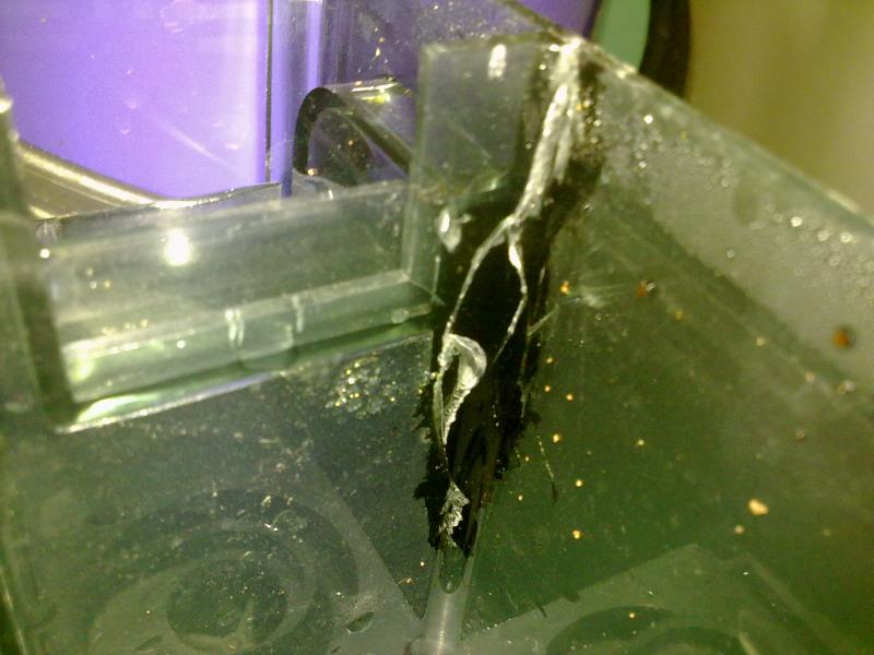 - в отсеке, где находится губка и субстрат, уголь был заменен на фильтрующую вату(помоиму от SERRA). Да, кстати фильтр с акварии пришел коцнутый, но я его подлатал герметиком.