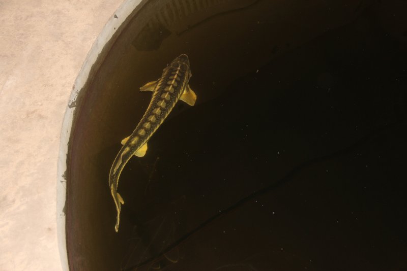 сейчас там сидит 150 кг осетров ленских и русcких, белуга и стерлядки