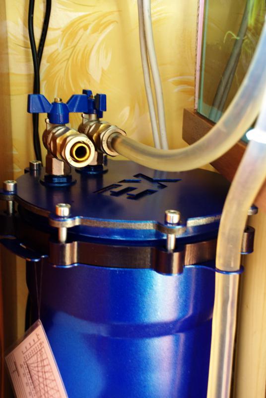 Второй кран на крышке служит для стравливания воздуха, заправки (запуска) фильтра, и подмены воды в аквариуме.