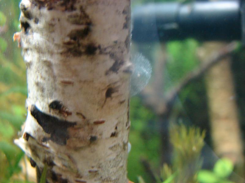 Пока как видите глобальных изменений в лучшую сторону-- нет.....Запустил креветок чериков.... Наверно нужно немного времени...тем более грунт обычный не заряженный кварц.....травник не форсированный, СО пока тоже не подаю....Но вот появились зато первые проблемки.....Обработка древесины кипятком результатов не дало и появились типа пузырей(че это я не знаю...мне игорь без коры давал корягу так на ней тоже такое появилось и я ее тупо вынул из аквы, а че тут делать пока не знаю--может подскажите че???? ....кстати вода прозрачная(более менее) а вот на фотках получается типа нериальный мутняк(может из за света?) или фоткать не умею....Теперь вот думаю не погорячился ли я в сетками с корой......может придется в срочном порядке варить новые..... но видел же люди делали именно с корой и с разных пород деревьев...может знают--то че я не знаю....Опять забыл добавить---Изночально хотел сделать аквариум с наименьшим вмешательством(опыт есть на 30 литрах)т.е. только только долив , если и подмена то раз в 1-1,5 месяца без УДО(только при подмене) и без СО2.Правда свет там были экономки 2шт. холодная и теплая, а с этой лампой пока неработал.