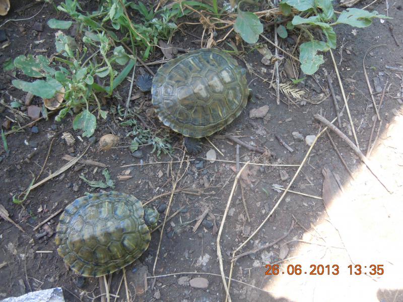 Вот отдали мне трех черепашек пока лето живут на улице. Красноухие в аквариуме 30 л, а болотная в баке для воды 1500 л. Кормлю сырой рыбой в основном карасем и сазаном. К осени планирую сделать террариум.