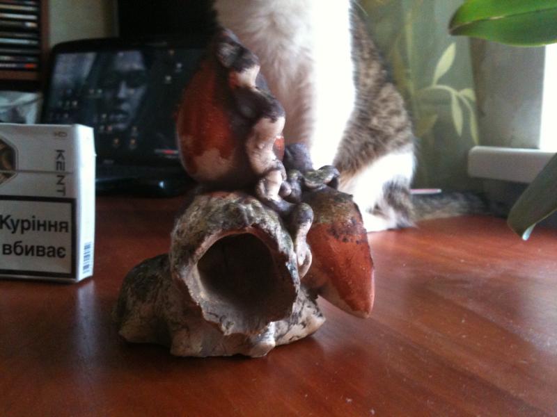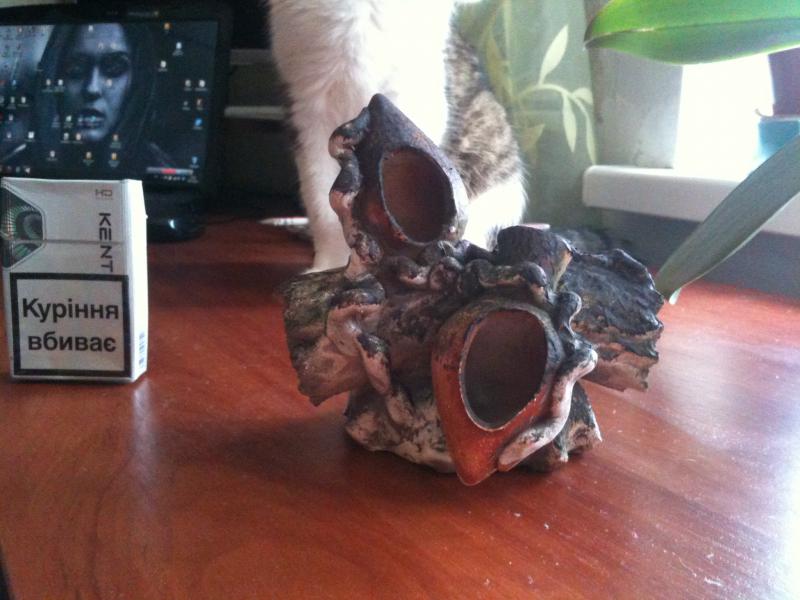 Время пребывания в аквариуме: выменял на форуме, но так и не поставил в аквариум. Острые углы затуплены, чтобы большие рыбки не покалечелись.