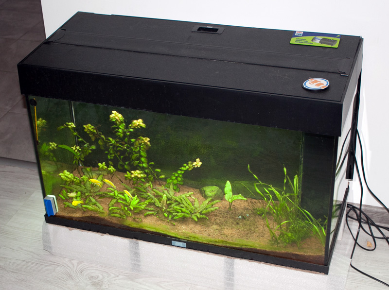 Ползает сомик, носятся 4 "лабидохромис еллоу" и 3 ещё какие-то. Не силён, заведовала хозяйством жена)