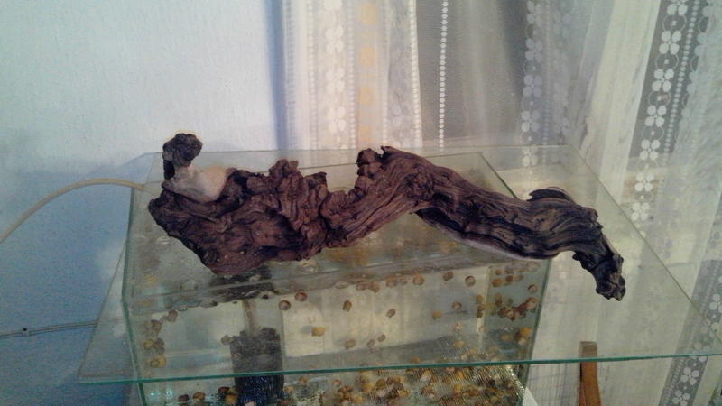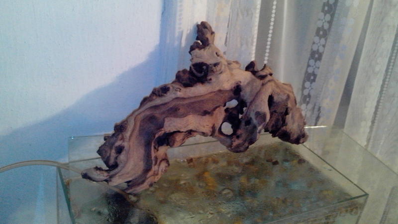 7. Коряга небольшая, корень дуба, слегка красит воду, напоминает что-то плоско-изогнутое фантастическое, размер ок.25*20*10.