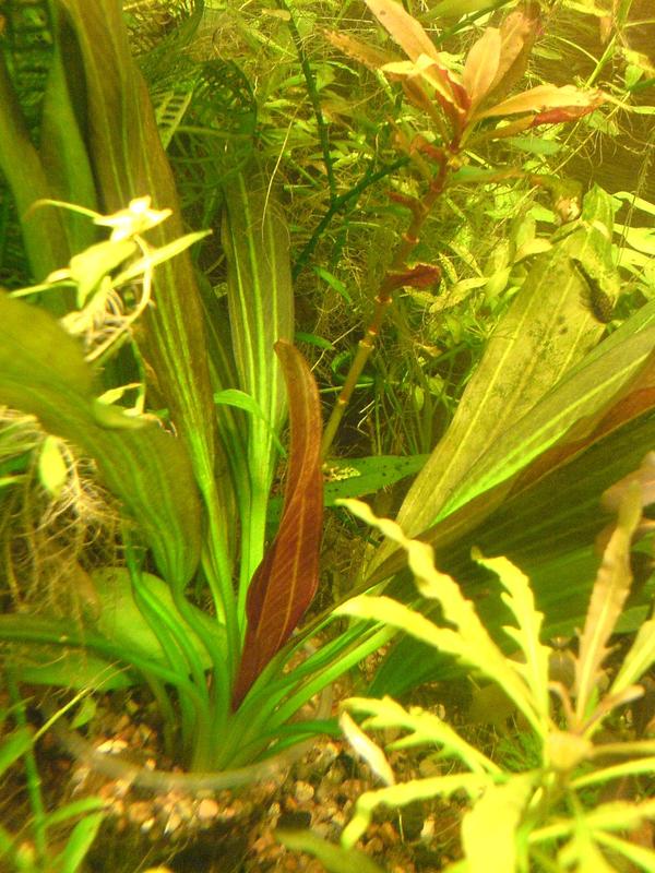 Описание растения: результат скрещивания между echinodorus «rеd flame» и «е. «kleiner ваеr». Среднекрупное корневищное растение. Подводные листовые пластинки на черешке до 10 см, очень узкие, эллиптические, длиной до 20 см, шириной 3 см, ярко-красные, с яркими, светлыми продольными жилками. Импозантный, хорошо растущий сорт; образует широкие, рыхлые розетки. Естественная высота растения составляет 20-30 см.