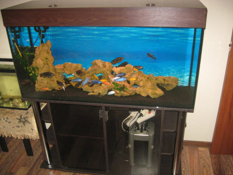 Аквариум 1200х400х550, 8мм, 260 литров, склеен очень хорошо (не гаражный вариант) + крышка из ПВХ (свитильник Т8 2х30Вт, независимый) + тумба (венге, колоны, танированое стекло) все это от одного проивадителя цена 1800грн