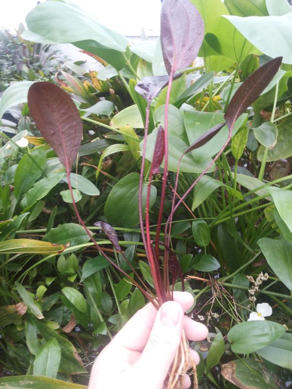 Под водой эхинодорус не высок компактен, около 25 см, держит 15-20 листьев имеющих насыщенную темно бордовую окраску, способен украсить любой аквариум. Детка надводная, перевод очень простой.
