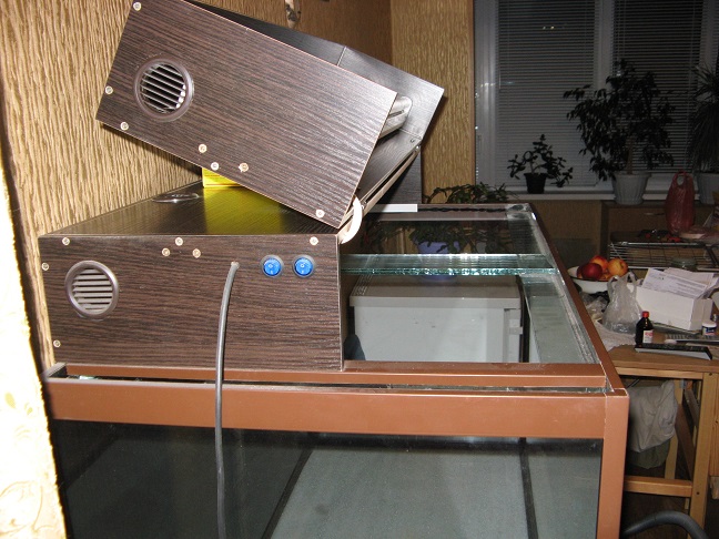 2. Подсветка (трансформер) выполнена из ДСП 10мм. Имеет 4 лампы по 36 Вт (90см, Т8). Работу можно понять по фото.