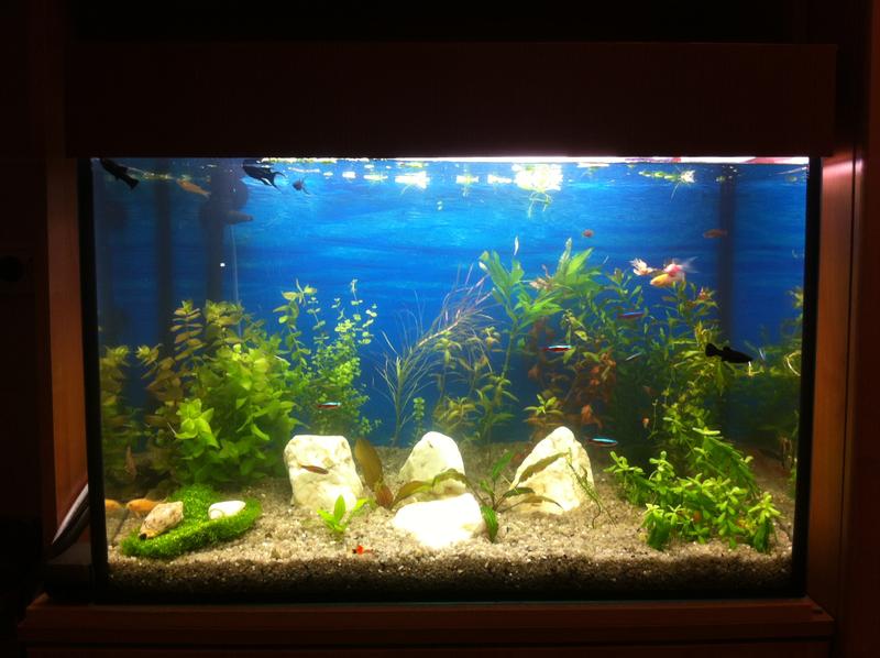 За фото не судите строго, так как запустился аквариум только в Понедельник и уже в Субботу туда перебралось всё населения и был подключён фильтр.