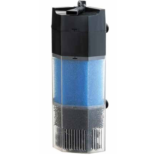 В большой прозрачной емкости размещена фильтрующая губка, которая под средством механической и био-фильтрации, гарантирует супер прозрачную воду, все это осуществляться благодаря тому что, особая губка быстро заселяется полезными бактериями. А также, фирма Aquael предлагает как обычные наполнители, так и картриджи с активированным углем или поглотителем фосфатов, предотвращающим рост водорослей.
