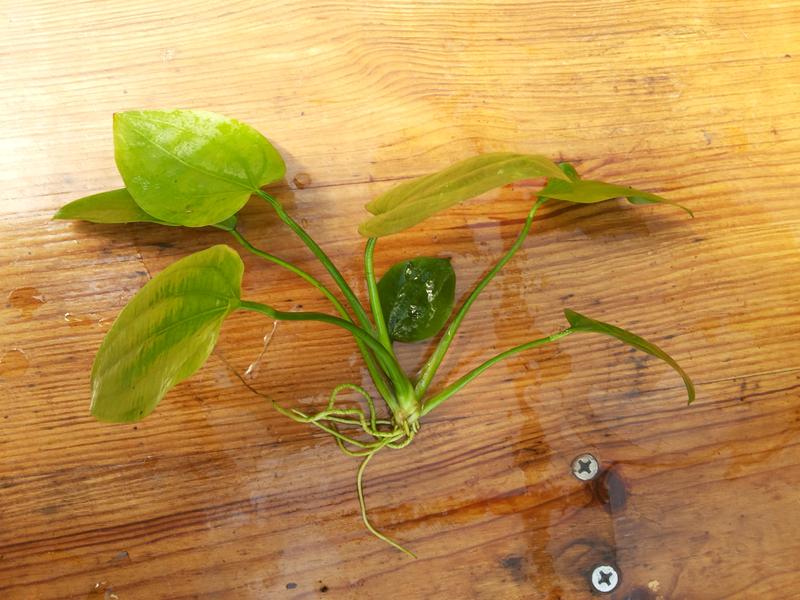 Под водой эхинодорус в хороших условиях выростает до 40 см, интересен благодаря своему оригинальному листорасположению, последнее время встречается все реже. Детка надводная, перевод очень простой.