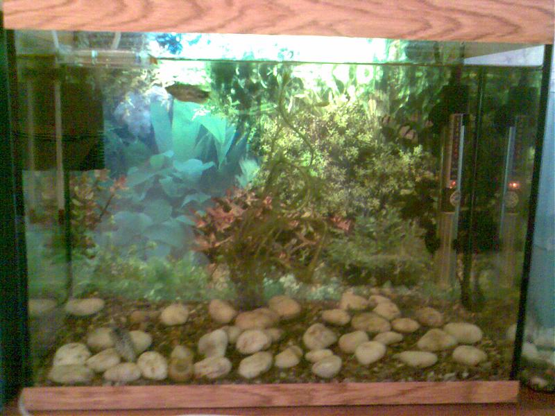 Живу пока две гурами мраморные 5 маленьких брабусов и сомик да и еще две улитки