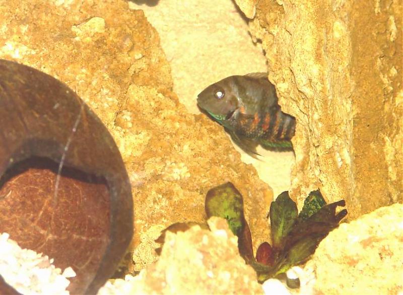 Подробнее о пещерах. Пробовал ковырять дырку перфоратором, с крупныи и мелким сверлом - сверлит, но уж очень правильно. Стамеска и зубило - после определенного удара камень кололся. Рашпиль и ножевка его не брали практически. одно полотно загубил. Потом сделал проще - взял целую каменюку, на улице расколол ее на несколько частей, с ровными задниками - одна грань на дно, вторая к стеклу. Потом выбрал место где нет крупных, мощных перемычек плотной структуры. Извесняк как бы состоит из каркаса и наполнения. Вобщем выбрав место начал помаленьку, легко "плющить" это место носком молотка. по чуть чуть, дробил в песок. главное сильно не бить - первый камень все же раскололся. Но сноровку приобрел и дальше пошло легко. Да, еще полезно долбить с разных углов. Постепенно выщербил пещерку. потом таким же макаром расширил, снеся неплотную породу. Промыл жесткой нейлоновой щеткой - вымыл песок, прокипятил в слабом уксусном растворе. промыл и расставив на сутки залил водой из аквариума. Потом добавил свежей, где то 50%