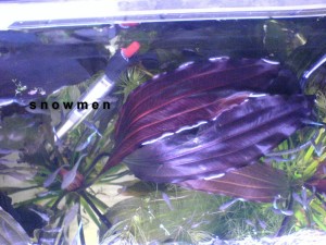 Вот краткое описание : довольно мощное растение, высотой 40 см., весьма многолиственное. Листья удлиненно-ланцетные, 4-6 молодых — малиновые,полупрозрачные, толстые по фактуре, гибкие, водой не смачиваются, слегка волнистые по краю. Черешки не длинные, зеленые. В содержании очень неприхотлив.