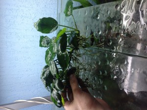 Маточний кущ Анубіаса Бартера. На кореневвищі вже є 5 розгалужень.