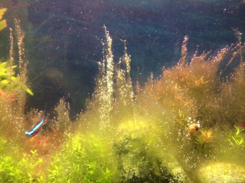 Добрій день! Подскажите пожалуйста, что за водоросли в аквариуме. Слизкие на ощупь. Появляются в течении дня при ярком освещении. утром их меньше. СО2 подается свет 8 часов яркий.