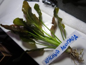 Echinodorus Roter Leopard Dsch N10)*- великолепный гибрид, который выделяется среди других красными, удлиненными листьями с едва заметным крапом. Молодые листья полупрозрачные, окрашены более ярко. Растение очень выносливо, может расти и в полутени, но тогда теряет яркость окраски.
