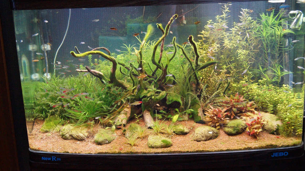 Параметры аквариума 193л (165л ): Грунт JBL Monado, Свет 10 часов 0,75 ватт на литр, фильтр JBL CristalProfi e901, население 50 Родостомусов, и 50 Голубая тетра боэлка