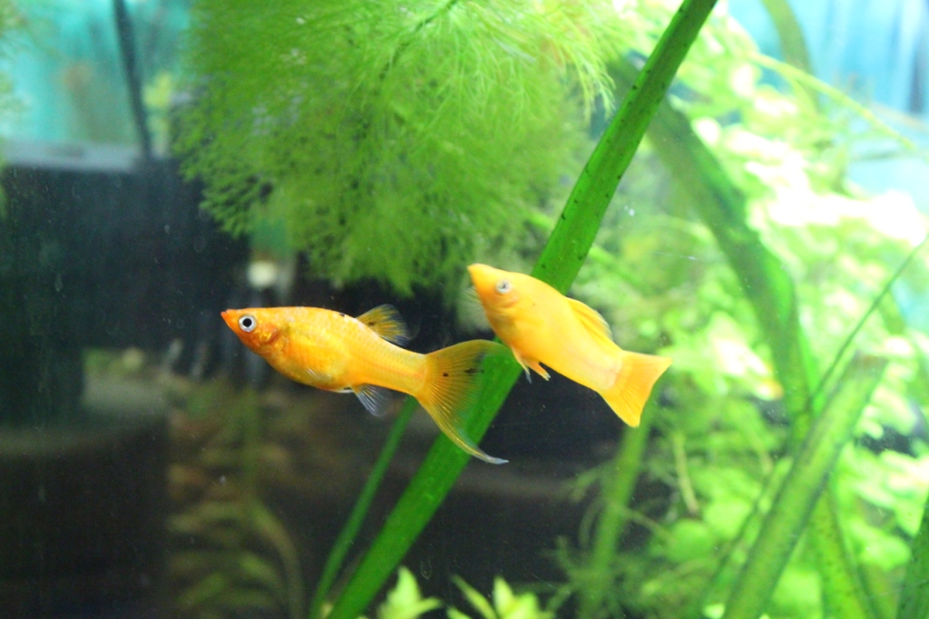 1. 2 пары взрослых молли желт.самка лира+самец парусный. есть небольшие маленькие точечки.