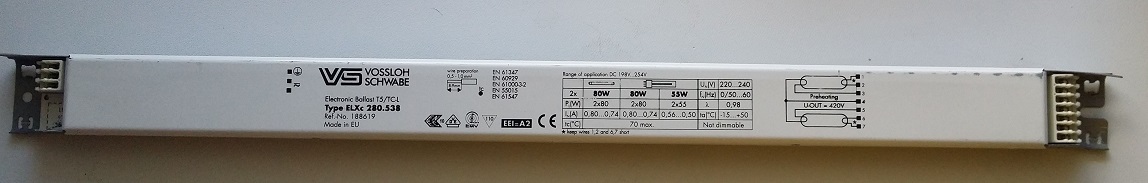2) 1 б/у ЭПРА VOSSLOH SCHWABE на 2 Т-5 лампы по 80 Вт.