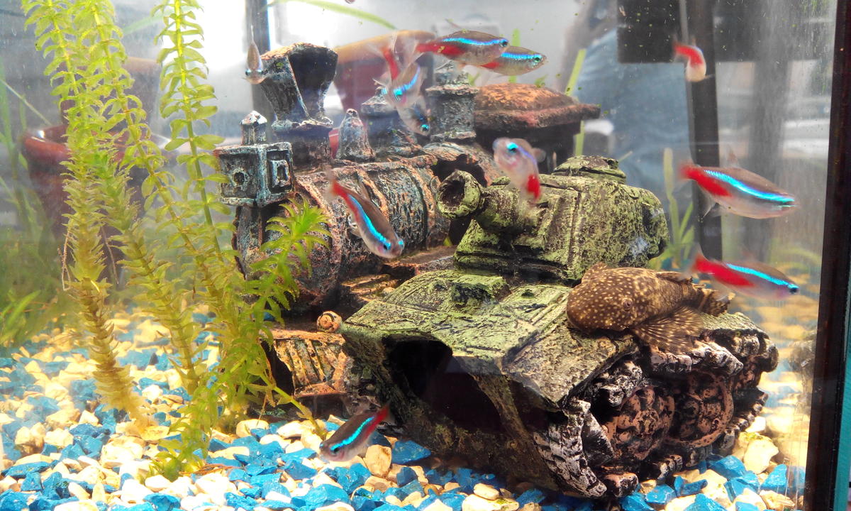 Уж очень плотно у вас заселен ваш "малыш", анцик там явно лишний, как и крапчатые и ампулярия, гадит она - не дай боже. Если хотите сомиков обратите внимание на нано рыбок - панд, нанусов и т.д. Поезда и танки вместе с унитазом - выкинуть, и посадить еще растений, хотя в такой грунт конечно мало что можно высадить... элодея у вас есть, можно досадить роголистник и наяду.. Главное рыбок не перекармливайте.. Тогда выживать будет не сильнейший, а все рыбки. )) Но если вас все устраивает - забейте на мой пост.