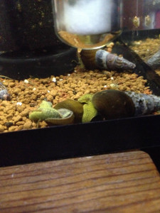 В лот входят 20* улиток. 6 взрослых и их детки. На фото сам лот с размерами. Хорошо себя чувствуют в воде с параметрами для креветок Кардиналов (мои: PH 7,5-8, KH6, GH10, температура 28-30).