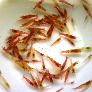 Необычный микс слабоокрашенных, или многоцветных: красных и желтых креветок Давиди.