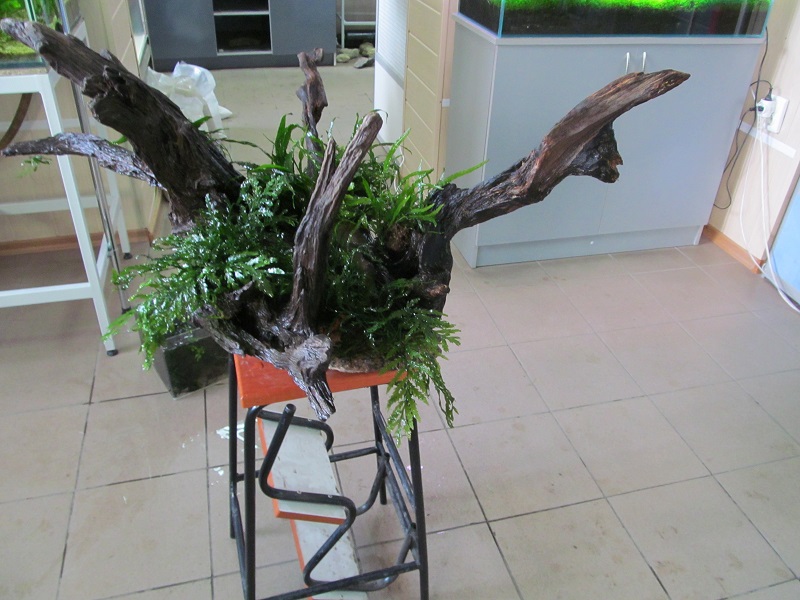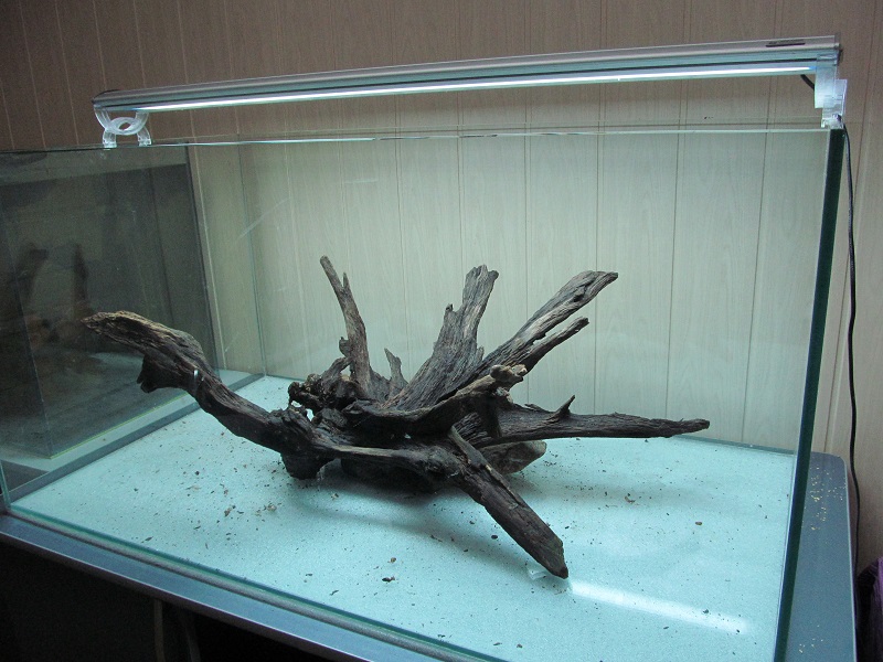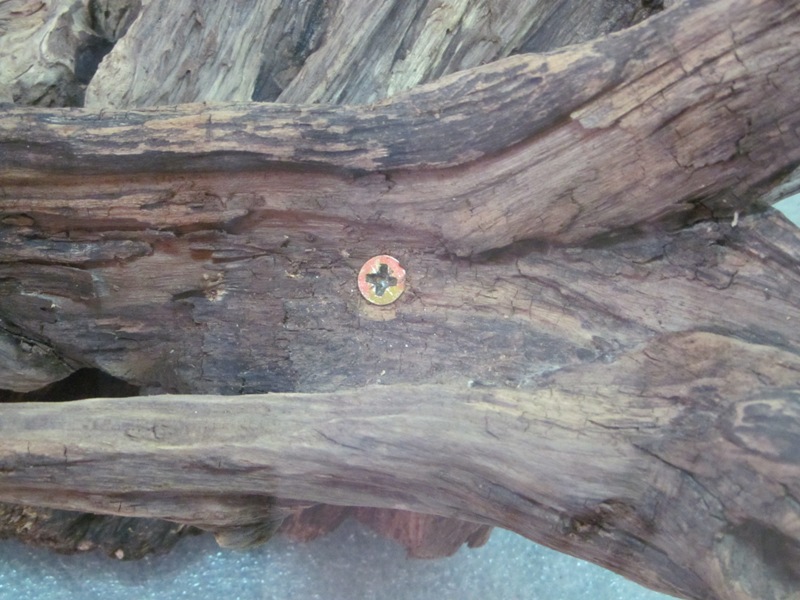 С помощью двух шурупов удалось объединить в одно целое элементы нашей коряжки. Будут ли ржаветь шурупы под водой мы скоро узнаем. Надеюсь, несколько шурупов в большом аквариуме не смогут сильно навредить.