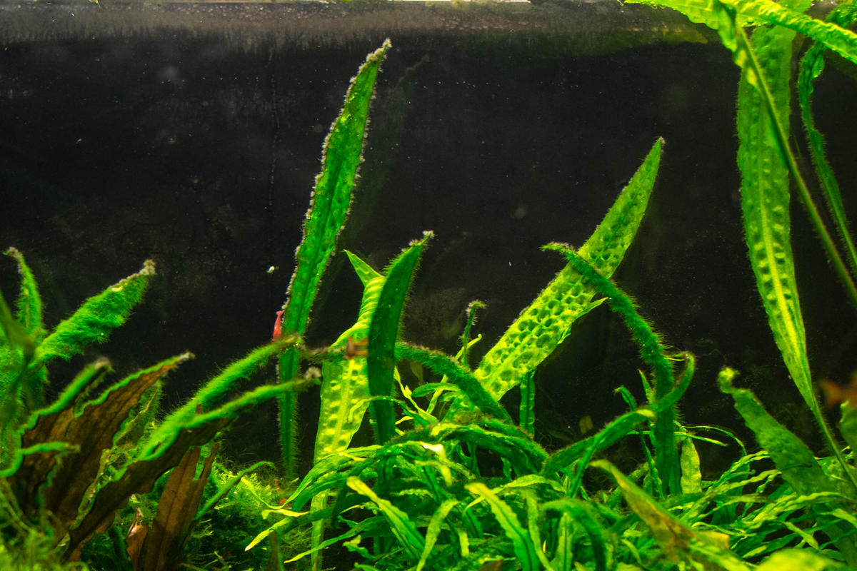 Акве 2 года, за это время появлялась нитчатка, но затемнением вывел, теперь появился какой то пушок и нечто похожее на нитчатку-кладофору, вывести пока не удалось. Начитался всего вдоволь, и что нитраты виноваты, и фосфаты и свет и прочее. В общем, что по фотке можете определить и как с этим бороться?