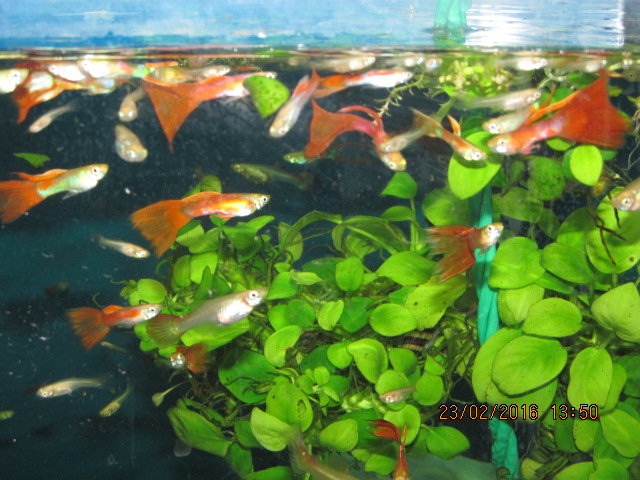 черрики и микс гуппи московской алой с эндлерами голд - молодежь, самки все золотистые, серых рыбок нет на фрукты, черный шоколад