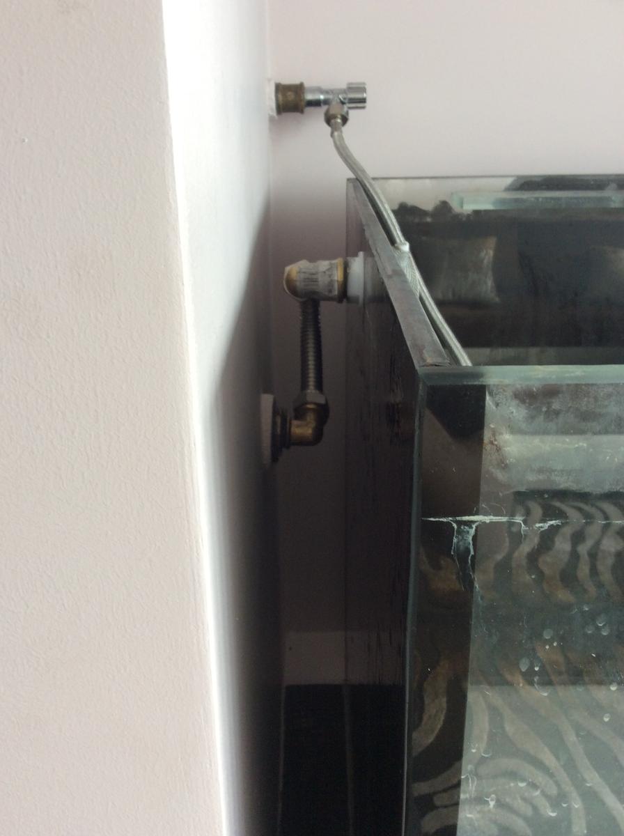 К аквариуму была подведена заранее холодная вода, греть буду уже внутри аквариумным подогревателем как обычно. Важен выбор крана холодной воды, он должен иметь возможность тонкой регулировки. Планирую, что протока будет настроена на смену воды 70 % в неделю, будет идти очень тонкая струйка.