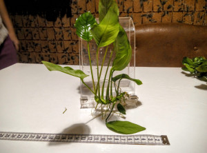 Рос в аквариуме, который стоит на подоконнике, на естественном освещении, подсветка только вечером в зимнее время. Без СО2 и удобрений. Аквариум мелкий.* Просто сильно разросся куст и я его проредила.