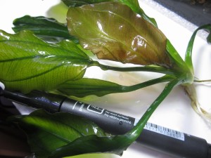 Эти параметры позволяют использовать его при оформлении переднего плана аквариума. Чаще всего взрослый куст несет одновременно 20-30 листьев. Узкие листья овальной формы весьма жесткие и кожистые, в длину они достигают 10-12 см, посажены на черешок до 7 см и имеют ширину пластины 3-4 см.