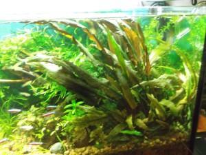 Завтра прополка вот этого участка что на фото — там два или три взрослых куста криптокарины Тропика — один из них может стать вашим. Водный столб — 30 см (это что бы прикинуть высоту куста)