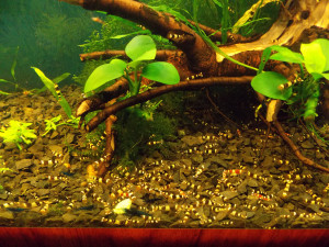 Вода осмос+водопровод КН-2-3; рН-6.5-7(присутствует удо в малых дозах).Корм-крапива,ошпаренные листья капусты,изредка таблетки для сомов.
