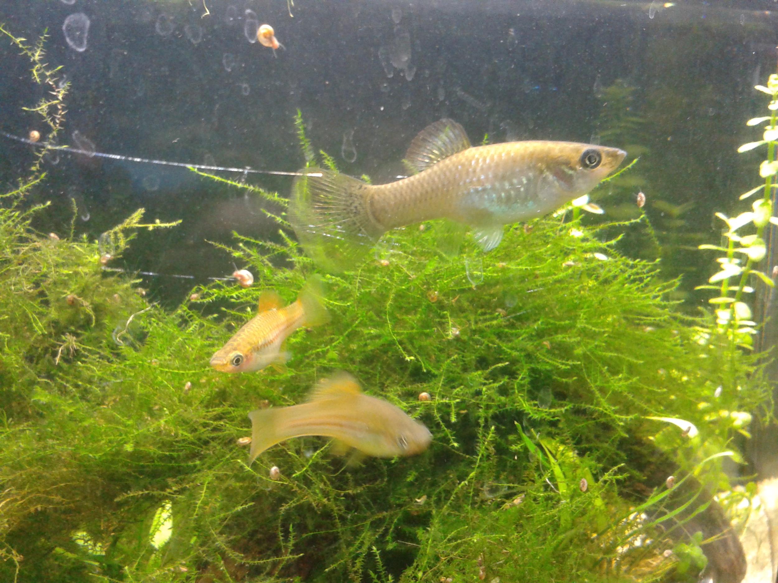 Есть на отдачу в добрые руки самка Зеленой Моллинезии (большая см 5-6) и три самочки Зеленого Меченосца (3-4 см) с красивыми оранжевыми хвостиками