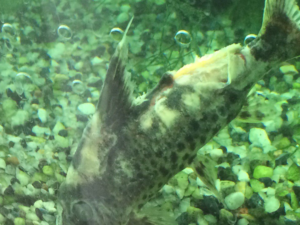 Беда с рыбкой. Живут у нас два крупных и упитанных сома-перевертыша. Три недели назад(пока я была в отъезде) один заболел, начал подгнивать плавник и появилось большое белое пятно и как будто прогрызенный задний плавник. Второй товарищ несчастного постоянно безжалостно гоняет по аквариуму. Думали, что это он его так изуродовал. Но прошло еще две недели и бедная рыба покрылась еще большим количеством очагов и помутнел правый глаз. В пятницу 14.10.2016 муж поменял воду, все почистил, залили аквасэйф и метиленовый синий, чтоб немного кондиционировать воду. Аппетит у всех хороший, только вот сегодня они отказались кушать(наверно стресс после чистки аквариума). Рыбы живут уже лет 6, никогда проблем не было. Был в течении лета эксперимент, подмешивали родниковую воду, чтоб смягчить основу, так как решили растения завести. В итоге и растений практически нет(не принимаются и все тут) и рыба заболела. Сейчас за несколько смен уже почти вернули предыдущую воду. Сделали перегородку, чтоб отделить болеющего.Лечим с субботы 15.10.2016 сома ванночками с 1 таб. бактопур+ 1 таб. метронидазол. Плюс в аквариум пол таблетки бактопура и по 2 таблетки в день метронидазола, замена воды каждые 3 дня по 50%. Сом перестал биться в конвульсиях, начал плавать, дышит спокойно и всячески сопротивляется когда пересаживаешь его в лечебные ванночки....Но!По виду не скажешь, что наросты и язвы заживают....задний плавник "распадается" на глазах...очаг поражения увеличился и превратился в одно целое...что происходит....правильно лечим-то?