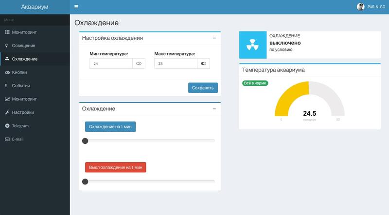 2. Уведомления онлайн (почта, телеграм), Вам необязательно быть рядом с аквариумом, что б узнать о проблеме, мало того, Вы можете еще и самостоятельно принять какое-либо решение в ручном режиме удаленно, не заходя в вэб-интефейс