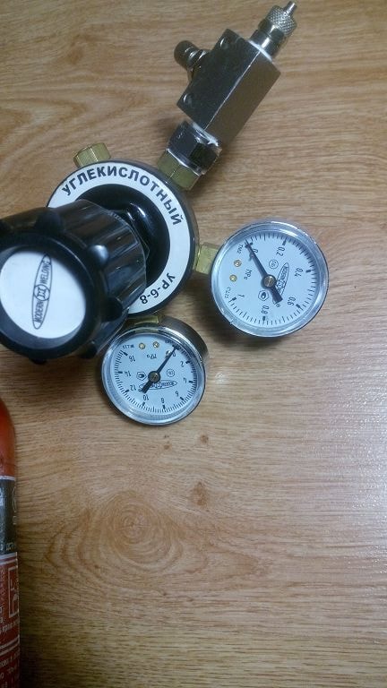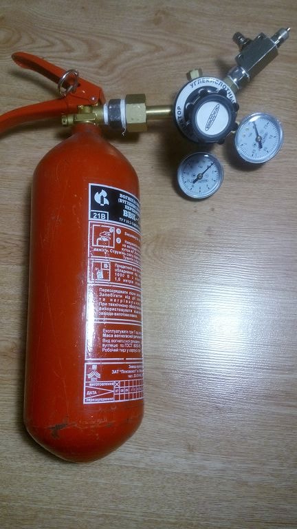 Система СО2 на основі балону із вогнегасника + перехідник під редуктор + вуглекислотний редуктор + кран тонної настройки . Балон зараз пустий .