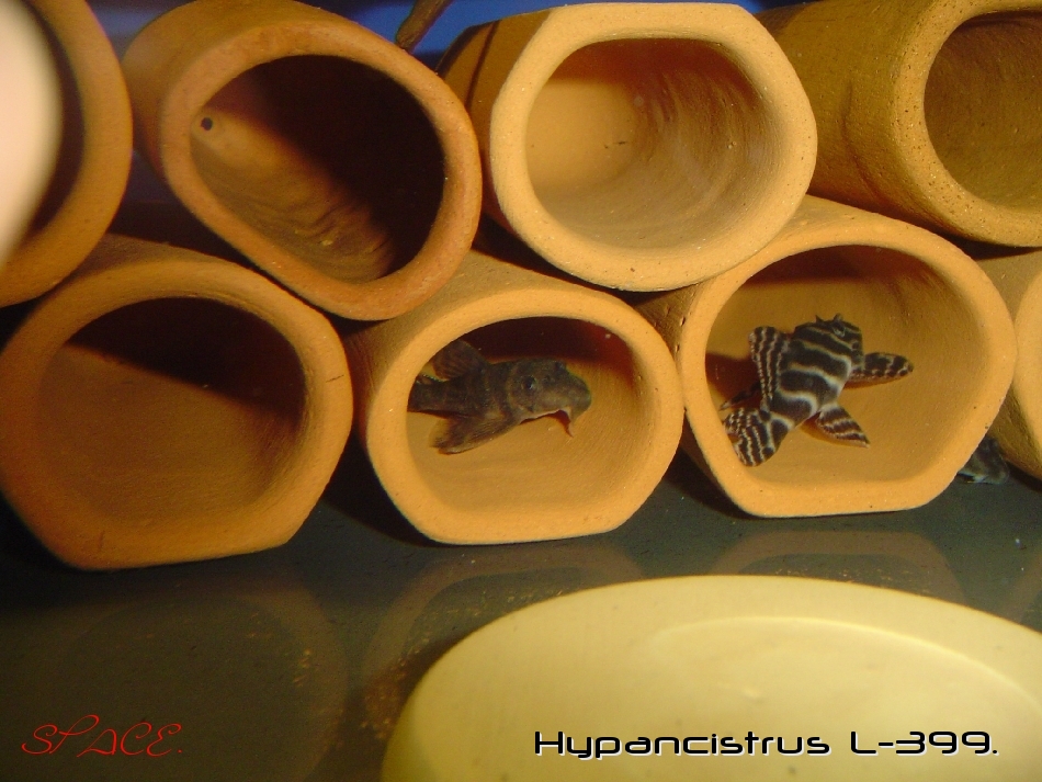 Сегодня рассматривал свою парочку в судке. Рыба сравнялась в размерах, нет явной разницы как на фото выше, стали похожи на верхнюю рыбу. По форме головы и стройности тела и не скажешь кто есть кто. Только одонтоды стали выдавать самца, на хвостовом стебле и на грудных плавниках. По сравнению с самкой он даже толще её, и, в основном, сидит в трубе.