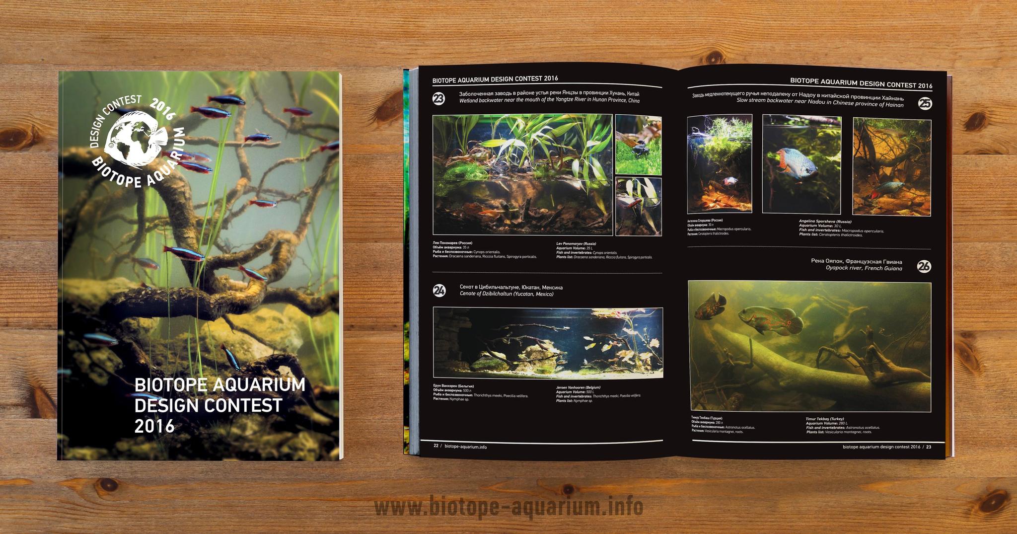 По итогам международного конкурса дизайна биотопных аквариумов выпущено памятное издание с 85 аквариумами и подробным описанием биотопной концепции. http://biotope-aquarium.info/ru/knigi/badc-2016/