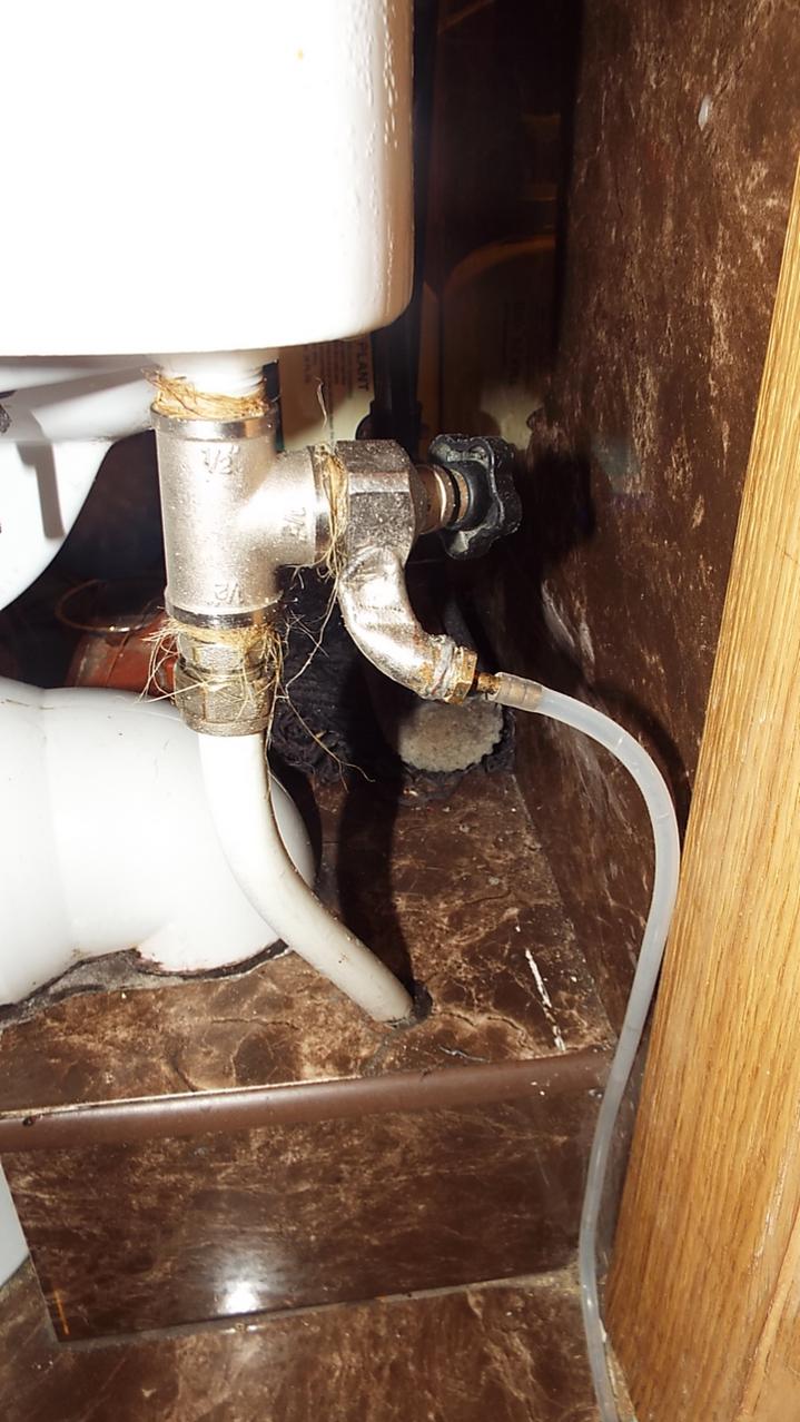 Подача воды осуществляется прямо с водопровода, через игольчатый кран (откуда он у меня появился, точно не помню, по-моему, шёл в комплекте с газовой колонкой).