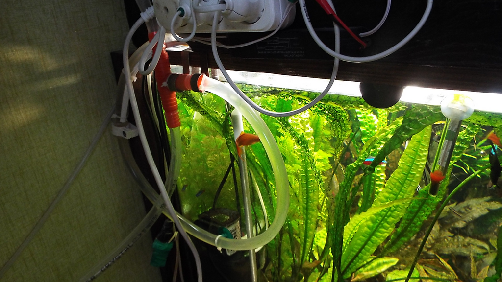 Вода стала кристально чистой, растения стали гораздо лучше расти и пузырить, стёкла практически не обрастают, вода в аквариуме не расхолаживается, рыбы тоже не жалуются. Не надо занимать ёмкости для отстаивания и последующего нагрева воды, бегать с вёдрами при её замене.