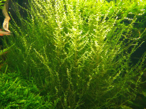 У Stringy Moss есть одна характерная особенность — вытягиваться вверх. Его можно горизонтально привязывать к коряге или к камушкам, он быстро поднимется вверх. Придаст вашему аквариуму необычайной воздушности.